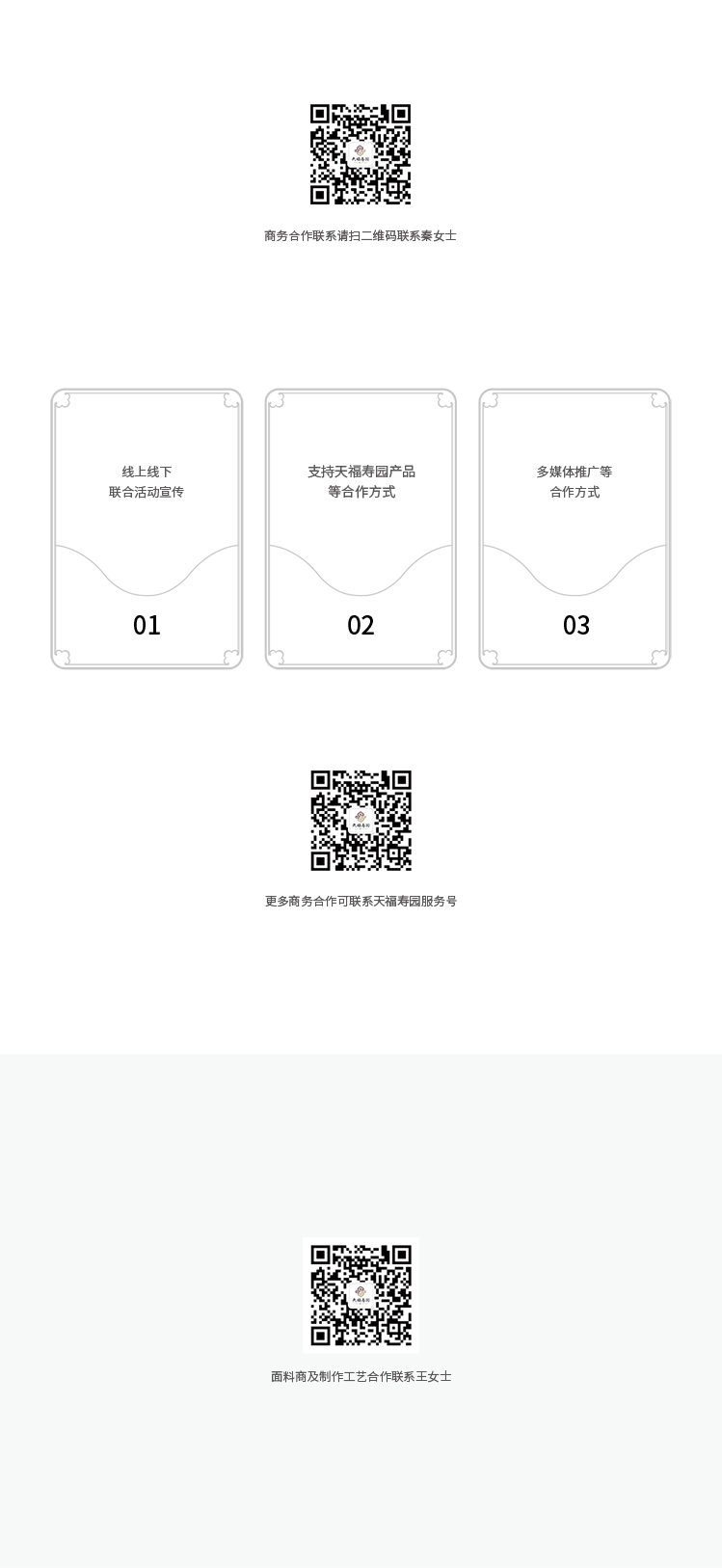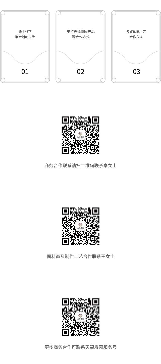我们关于合作的研究和沟通是无框架的,各行业如有好的资源与合作方式如有意向都可以与我们联系,天福寿园期待与您的合作!